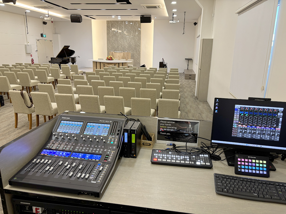 With a seating capacity of about 100, the church had relied on an analog mixer for many years. However, the need for advanced DSP features and flexible output routing prompted the move to a digital mixer. Our distributor, Sindo Exports Pte Ltd., introduced Sonicview 16 to the church and proposed a solution that aligned perfectly with their requirements. As a result, the church selected Sonicview 16 as its new system.