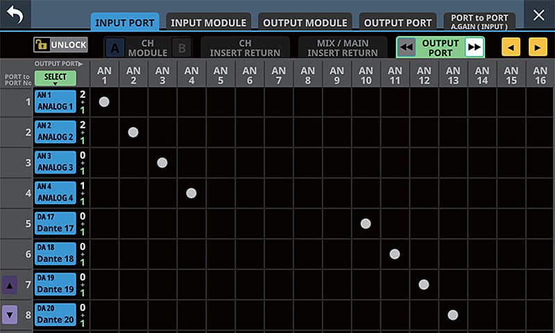 入出力ポートまたはモジュールのルーティング設定を一括して行えるルーティング画面を追加しました。各入出力のルーティング設定をより素早く確認、設定できるようになりました。